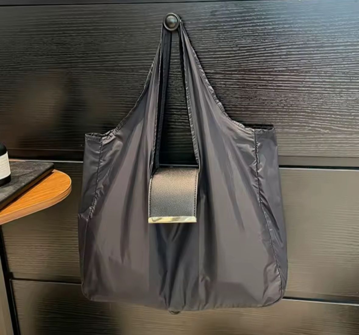 Answer 1: The tote bag is designed to be durable and can handle heavy loads, making it perfect for carrying groceries, gym gear, and other essentials with ease, thanks to its high-quality nylon material that ensures resilience under regular use.