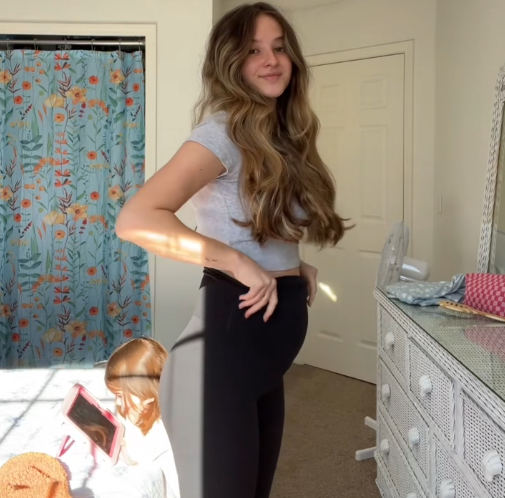 Answer 3: Not at all. The fabric is crafted to be completely opaque and squat-proof with 4-way stretch, ensuring you stay fully covered and confident whether you are at a prenatal yoga class or just reaching for something on a shelf.